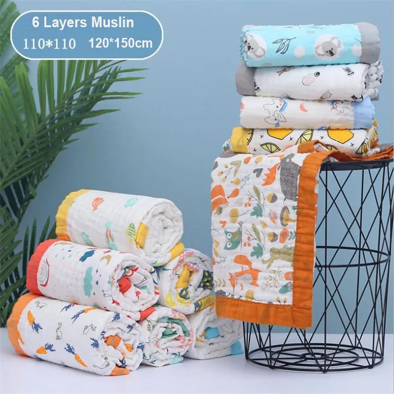 110x110cm 120x150cm 6 Layer Muslin Boy Girl Kids Children Sleep Blanket Swaddle Bath Towel 100% Cotton Newborn Wrap Baby Blanket