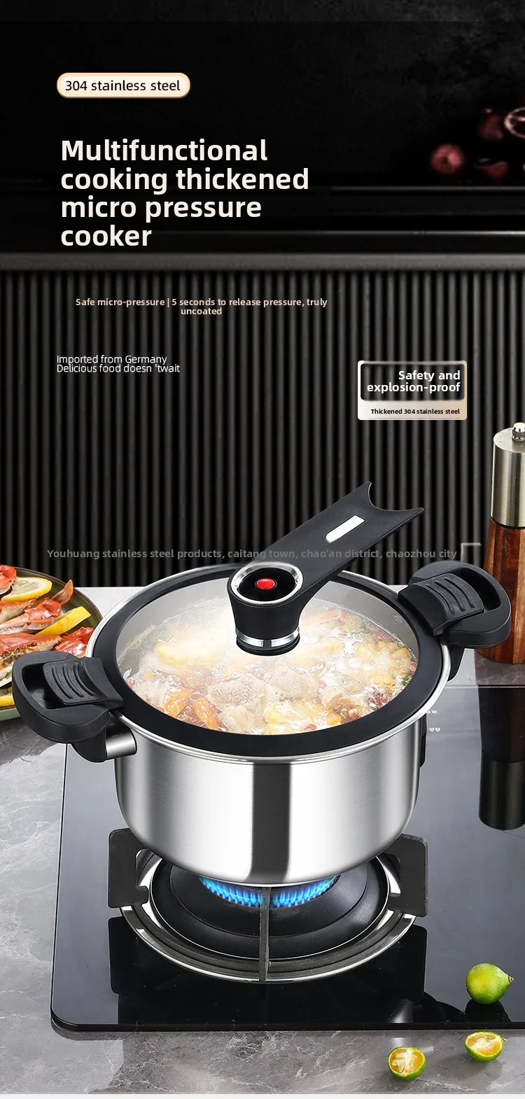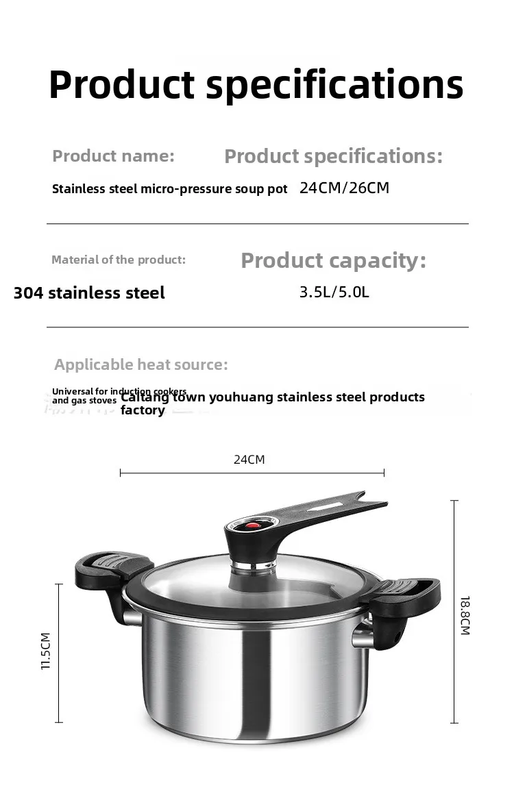 304 stainless steel micro pressure cooker multifunctional soup pot household pressure cooker electromagnetic stove gas universal
