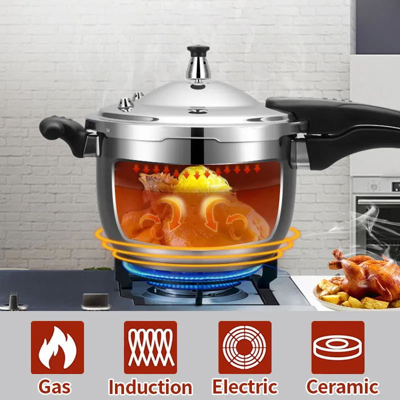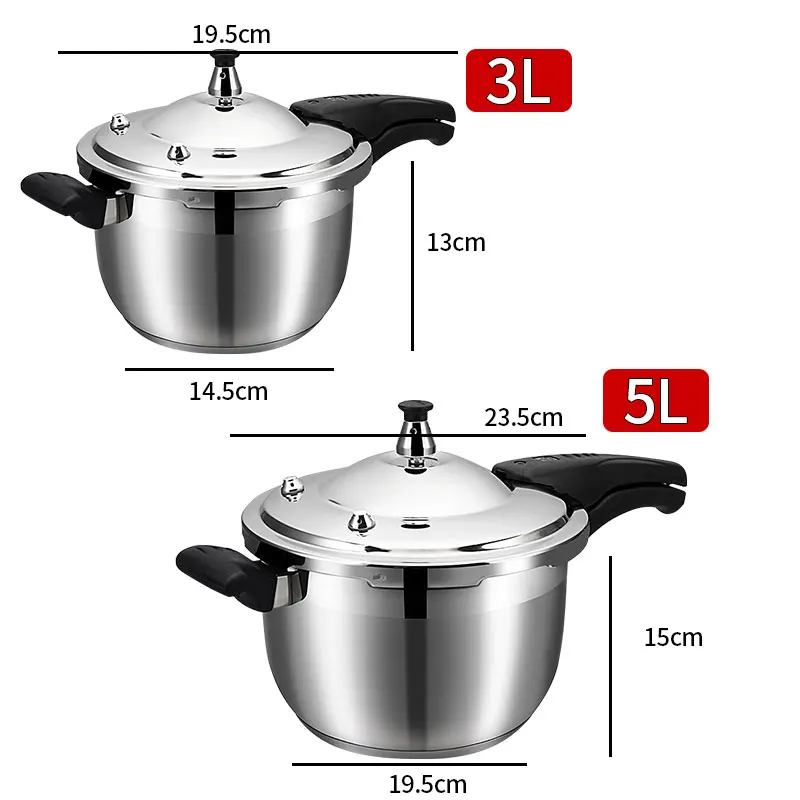 3L/5L Kitchen Pressure Cooker Stainless Steel Fast Cooking Pot Compatible With Gas and Induction Cooker Outdoor Camping Cookware