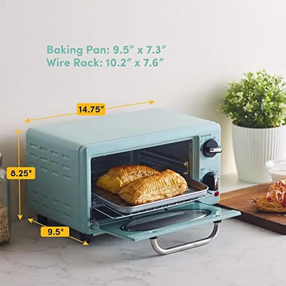 - ACCESSORIES INCLUDED – Includes an enamel coated bake pan, wire rack with 3 rack positions and a slide out crumb tray.