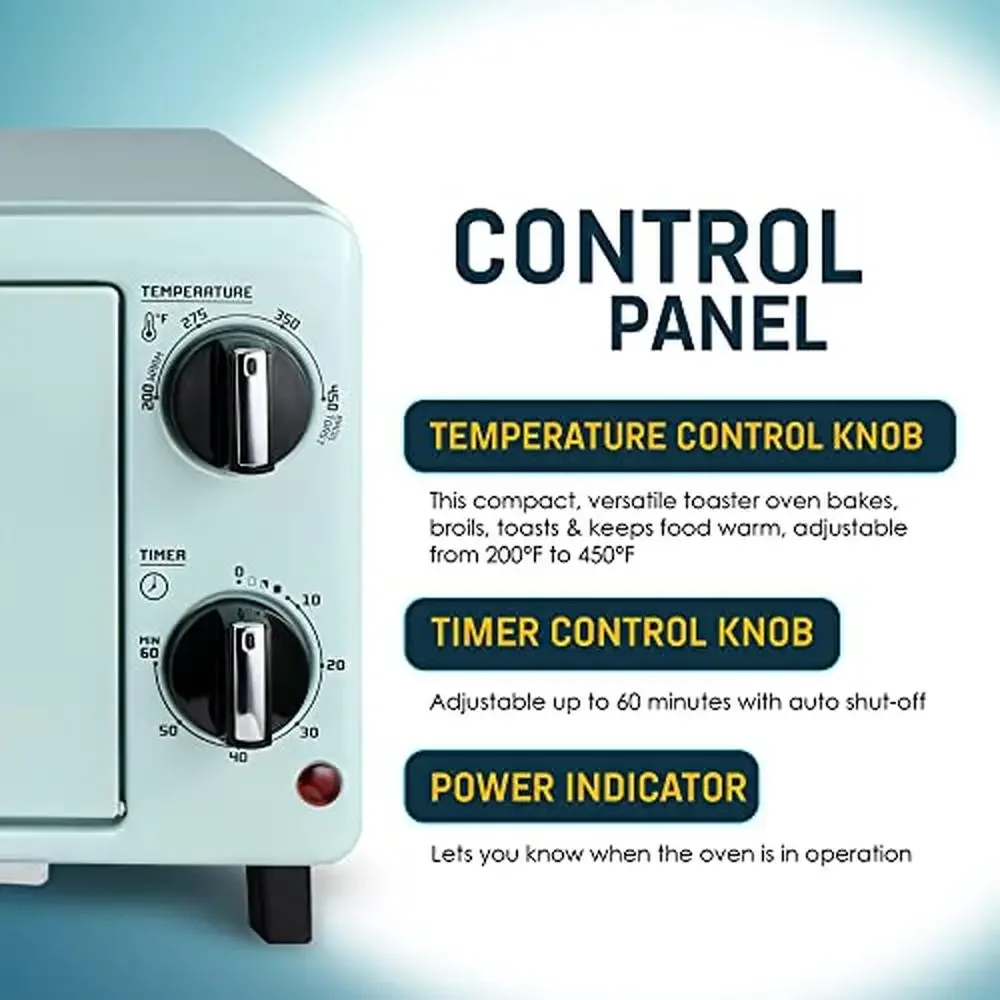 - ADJUSTABLE 0-60 MINUTE TIMER is perfect for toasting and warming up food for a quick and easy snack or breakfast. However still has the capability of roasting and baking a delicious meal.