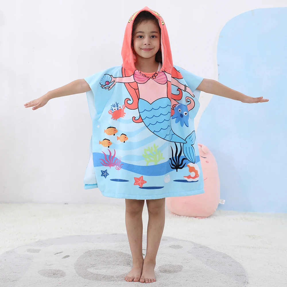 Children Bathing Stuff Kids Hooded Cape Towel Boy Shark Bathrobe Baby Dinosaur Bath Towel Girls Unicorn Beach Towel Wrap Blanket