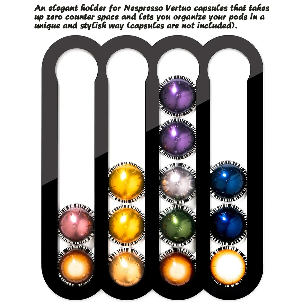 An elegant holder for Vertuo capsules that takes up zero counter space and lets you organize your pods in a unique and stylish way (capsules are not included).