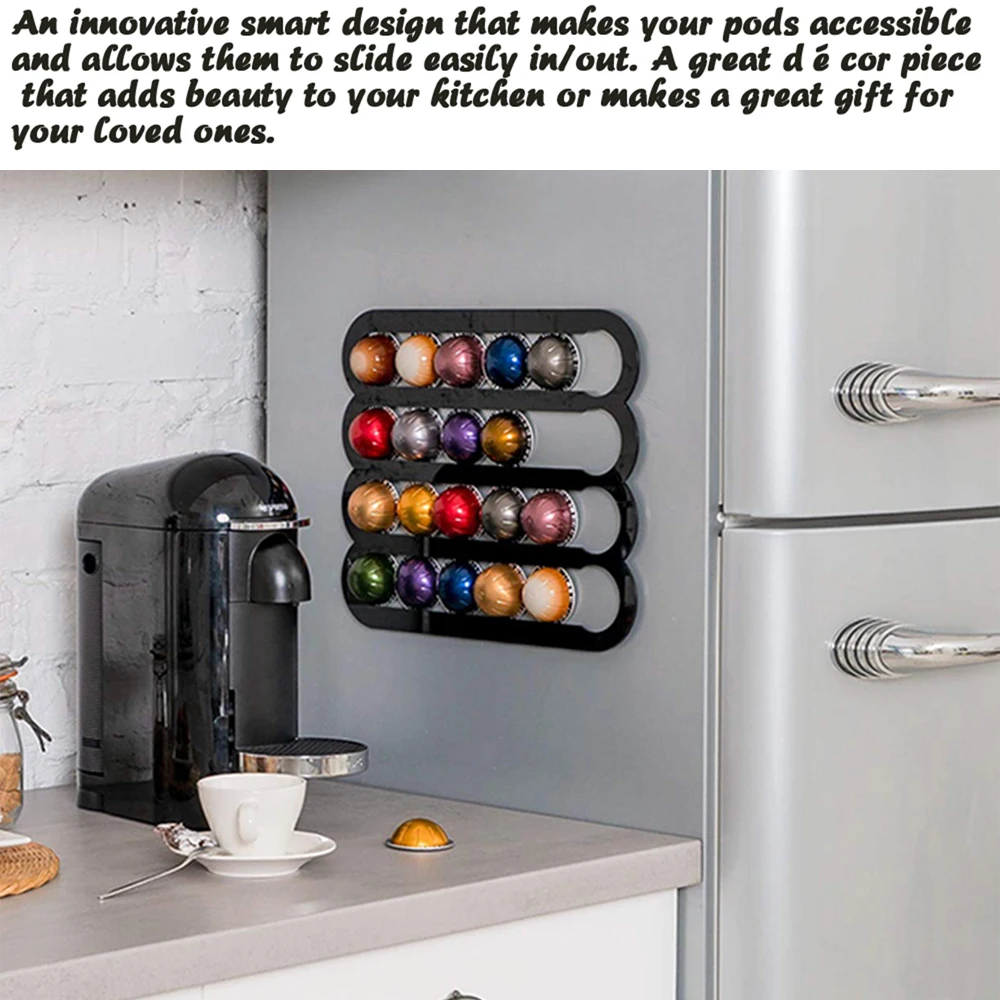 Holds up to 20 coffee pods! Keep your countertop uncluttered and know exactly when it's time to order coffee pods again!