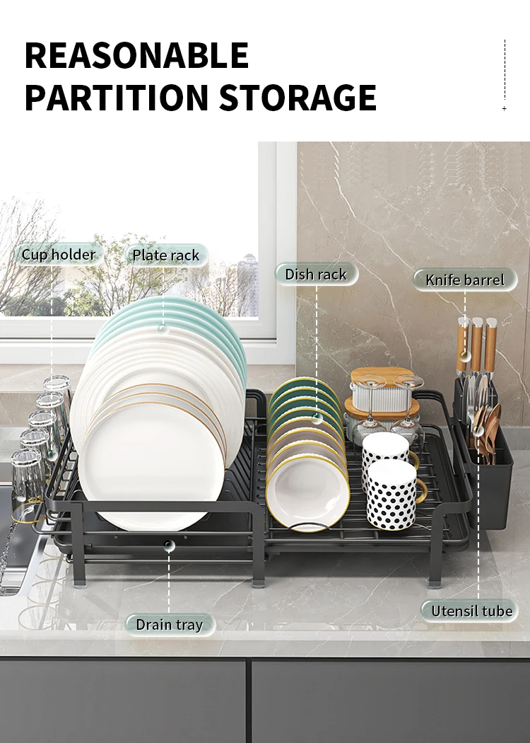 2. Drain board Included: Comes with a detachable drain board for efficient water drainage and drying.