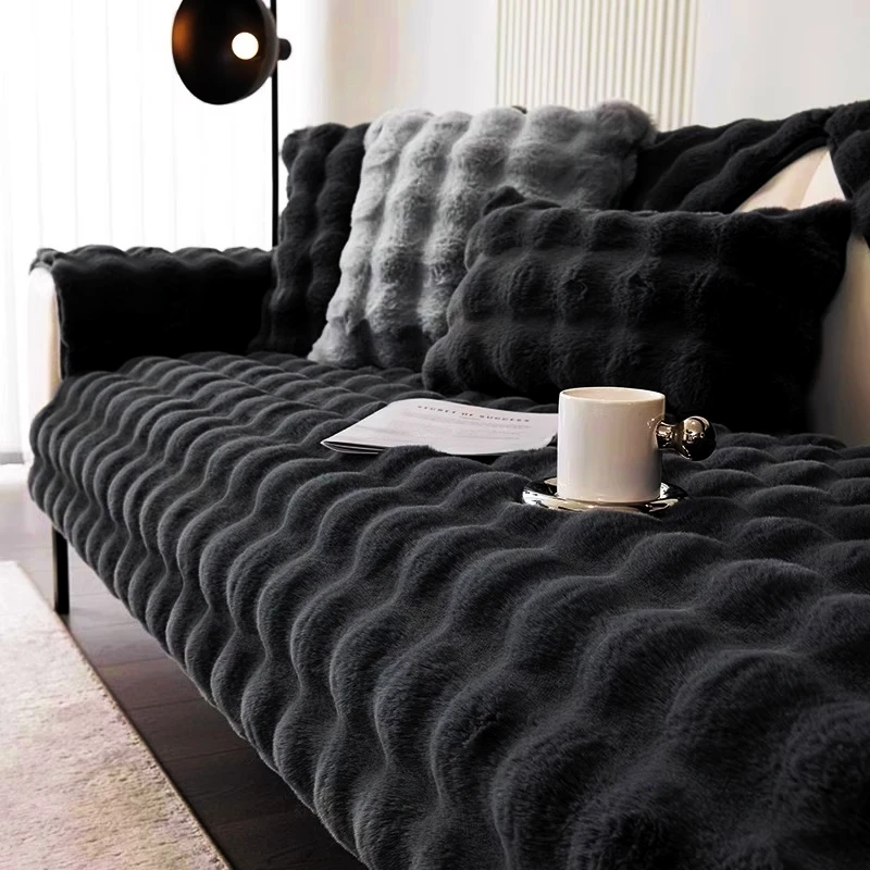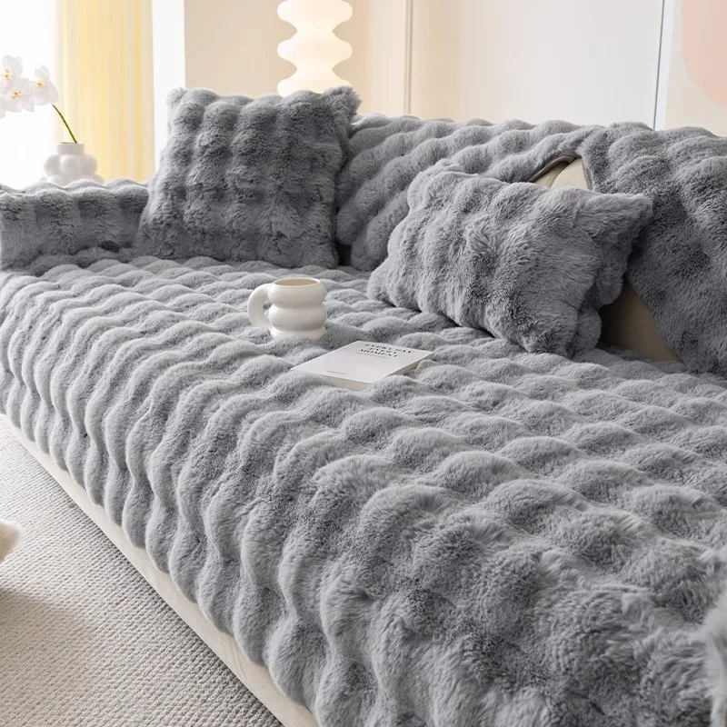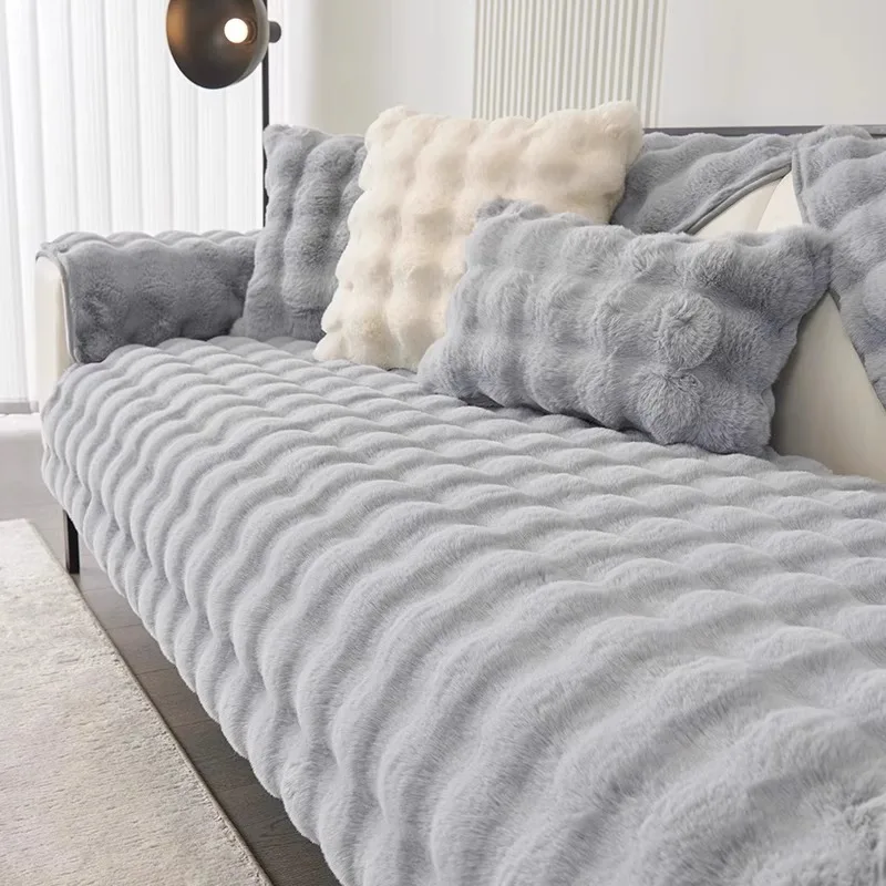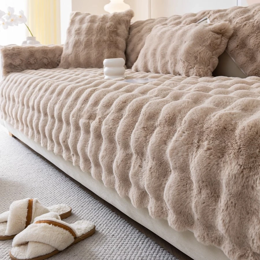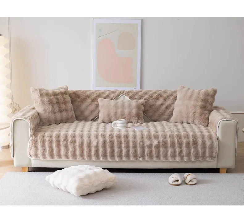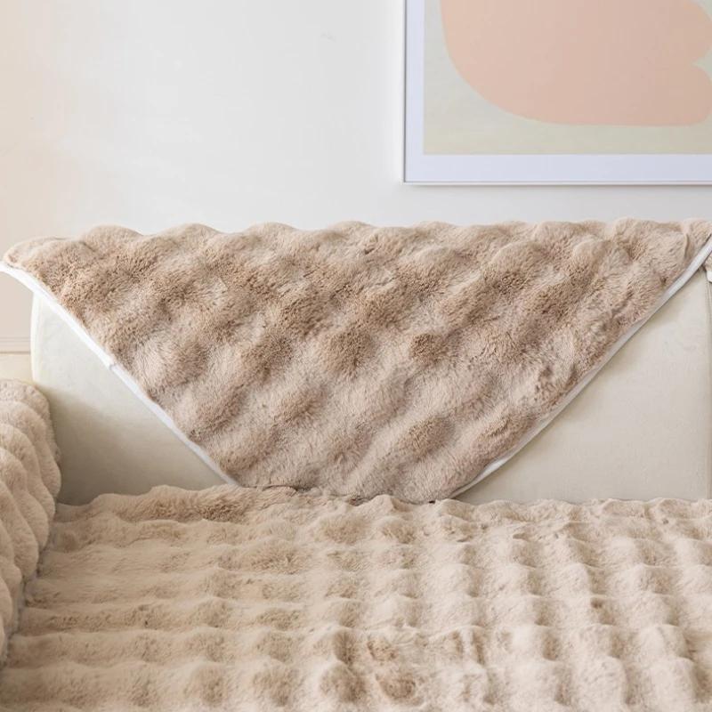 Thicken Faux Rabbit Fur Plush Sofa Slipcover anti-slip Soft Sofa Towel Couch Cushion For Living Room Modern Home Decoration