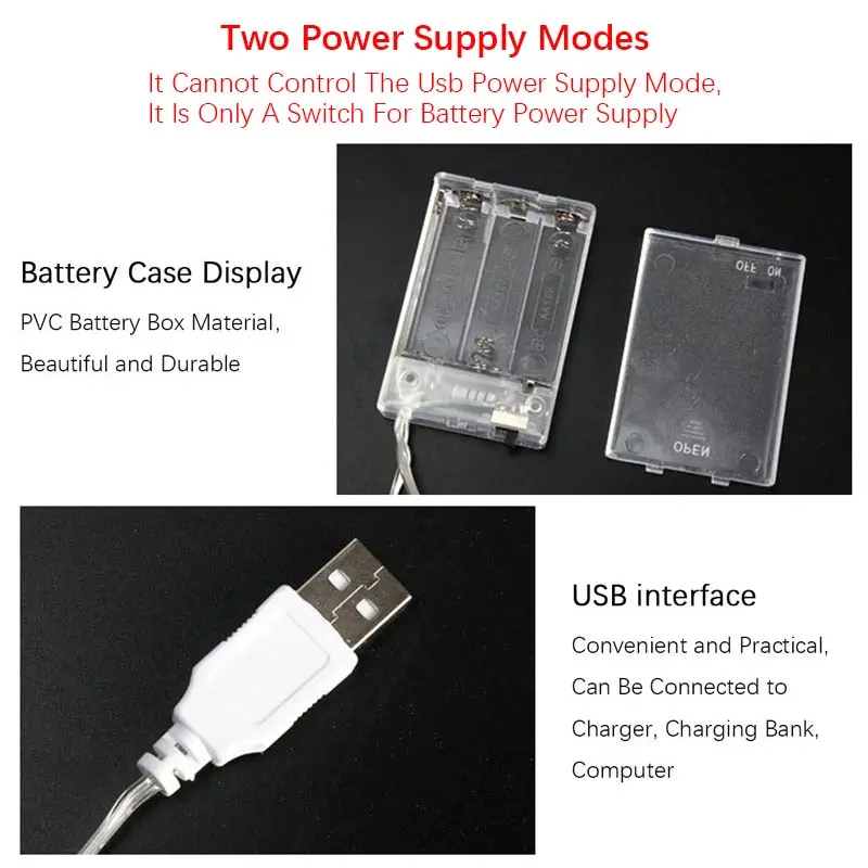 • Use 3 Section 5 battery, also may use USB, the computer recharges the treasure plug to be possible for the USB use.