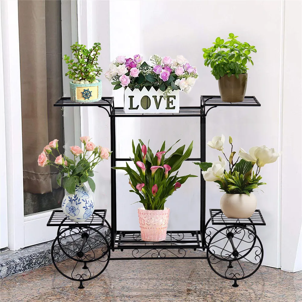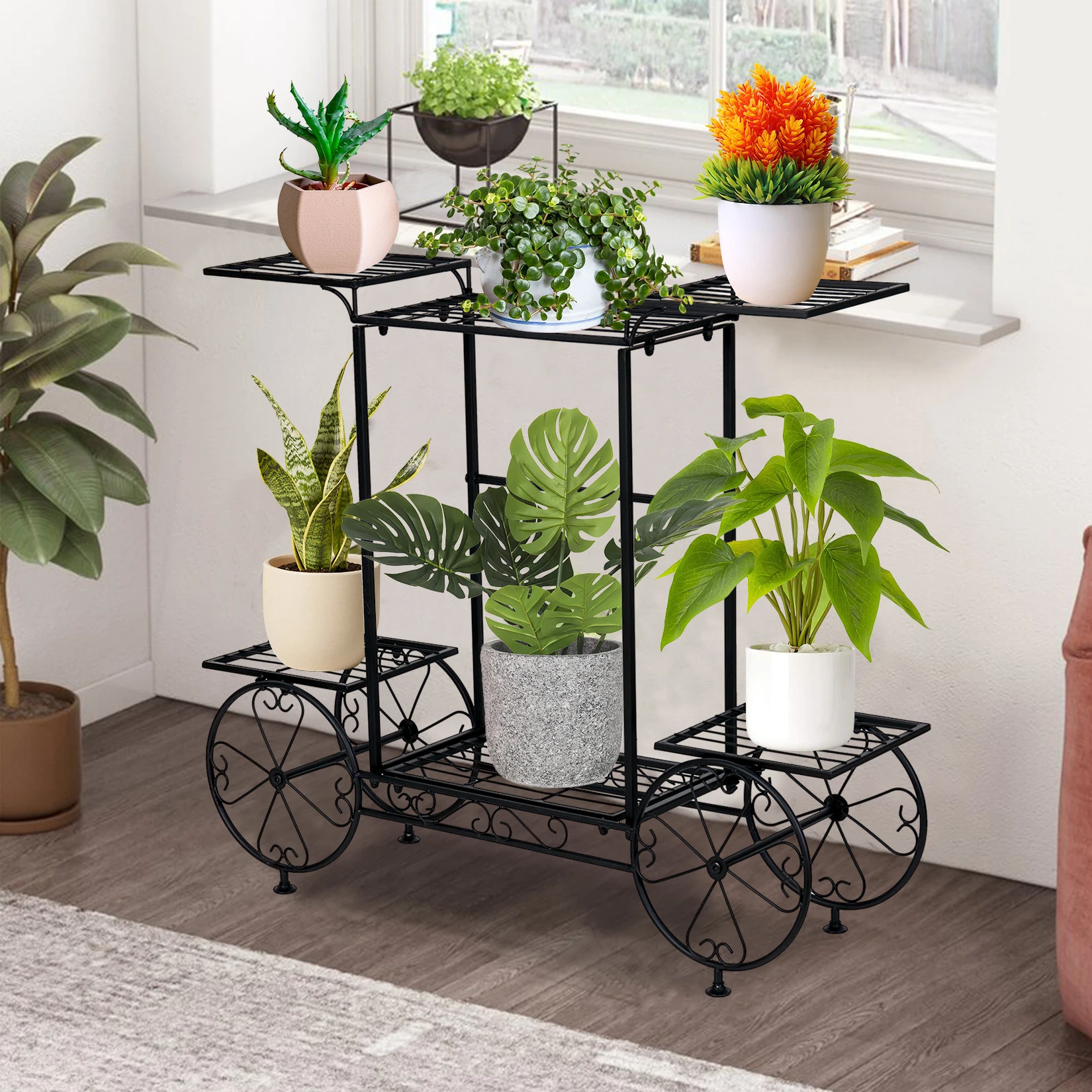 Large Metal Plant Stand Indoor 6 Tier Garden Cart Plant Holder Wrought Iron Plants Display Shelf Rack Outdoor Decorating Garden