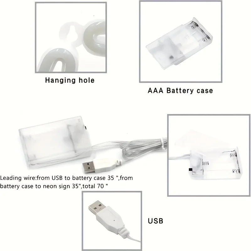 Turn it on using 3 AA batteries (not included) or a USB adapter. The neon sign can be connected to a mobile power source or computer. You can choose the power supply method according to your own needs.