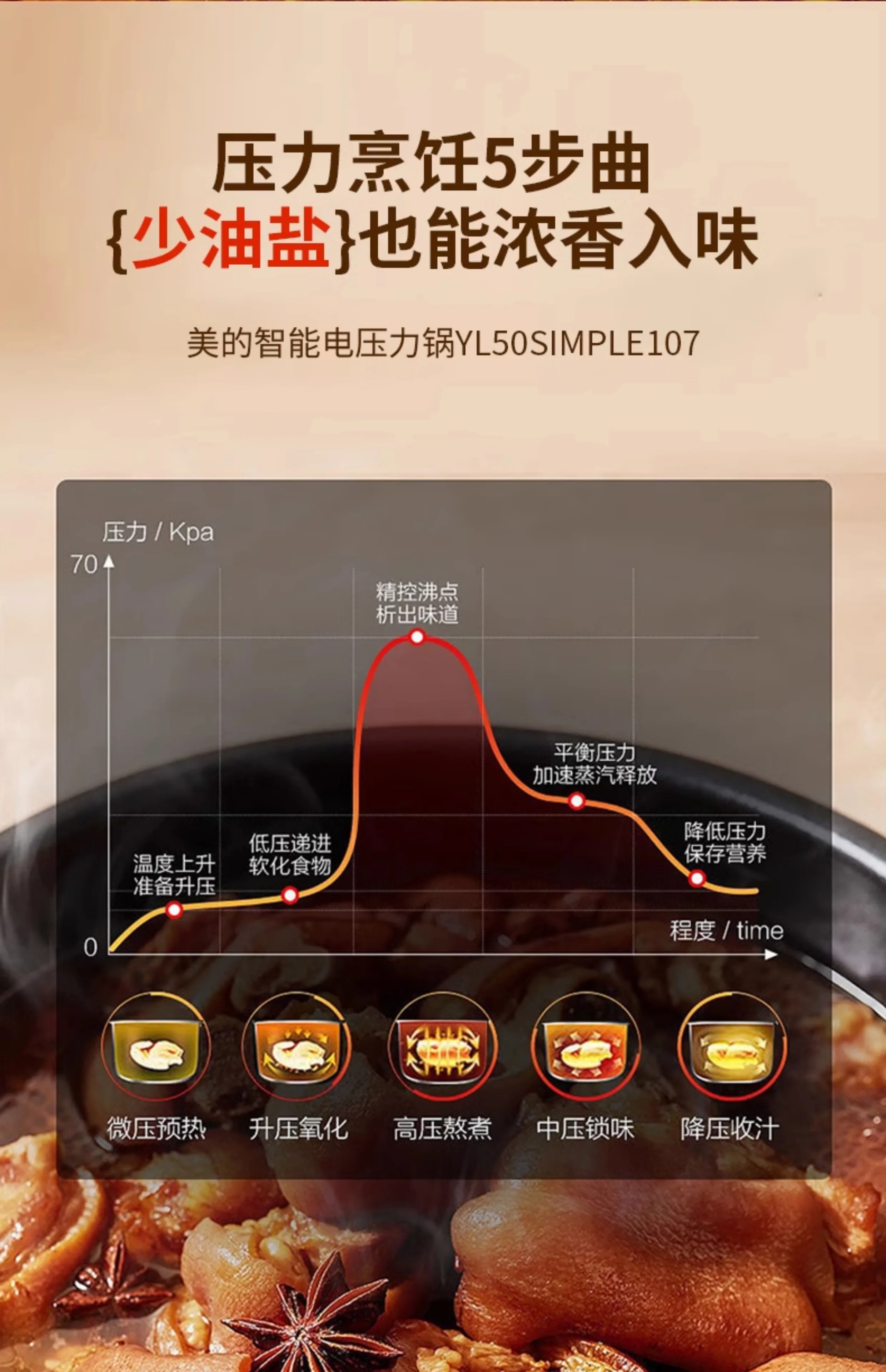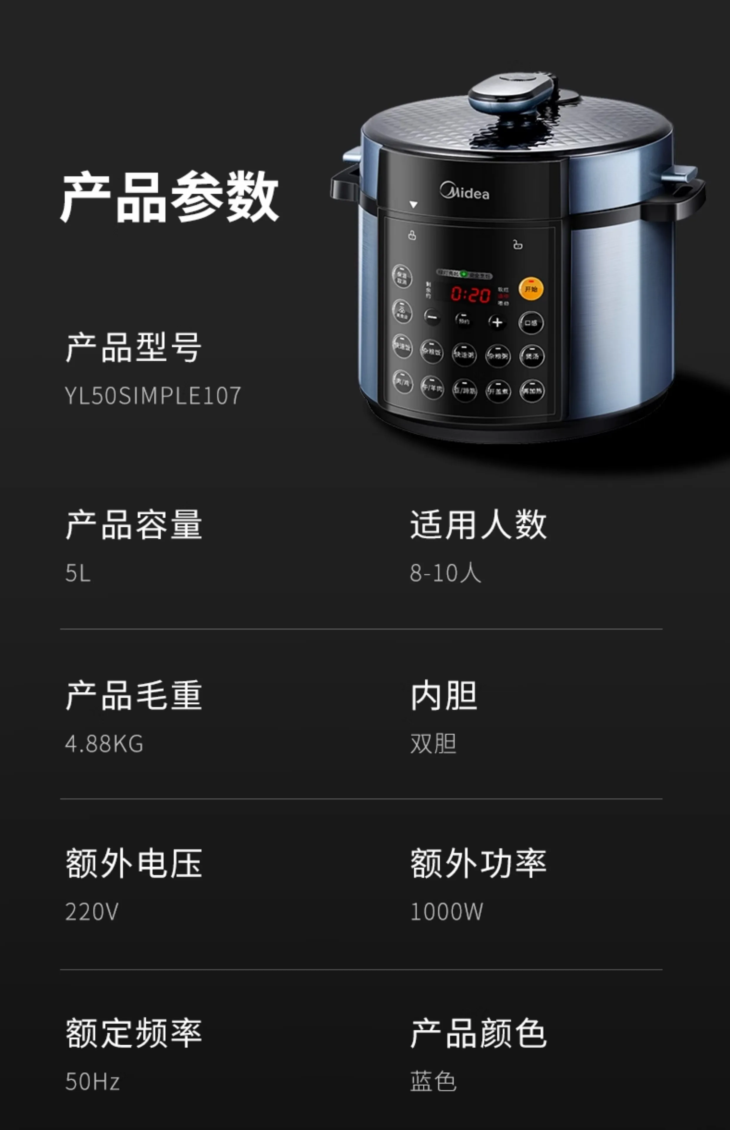 Midea electric pressure cooker household 5L large-capacity rice cooker multi-functional automatic pressure cooker