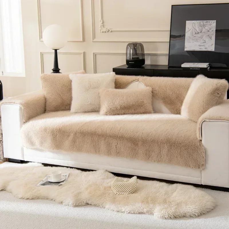 Luxury Fluffy Sofa Cushion Mat Warm Winter Sofa Towel Covers Super Soft Non-slip Couch Slipcovers for Living Room Bay Window Pad