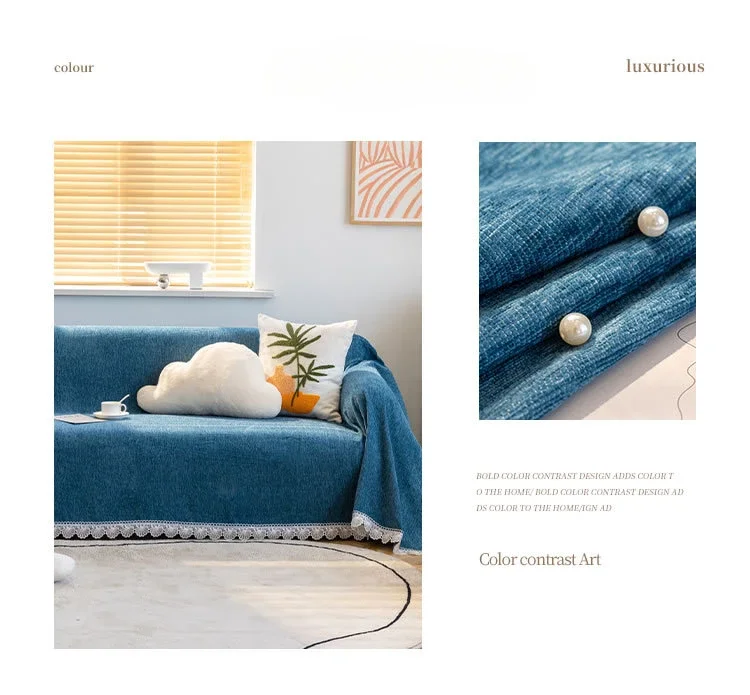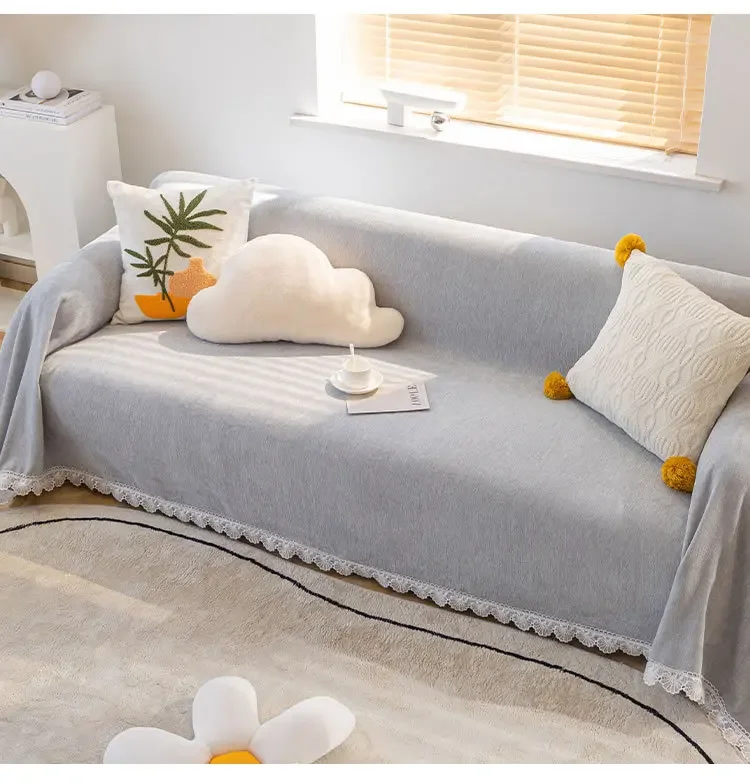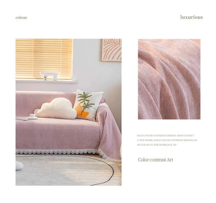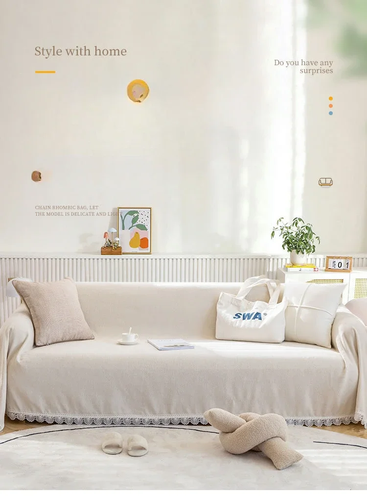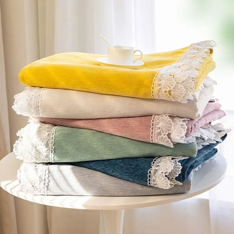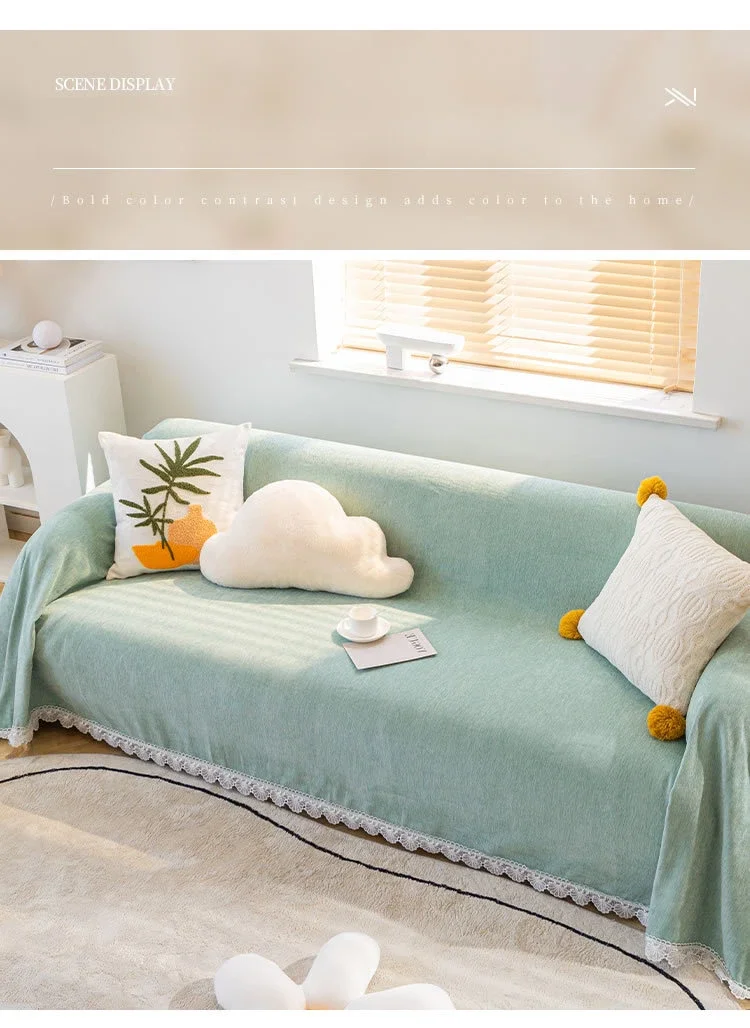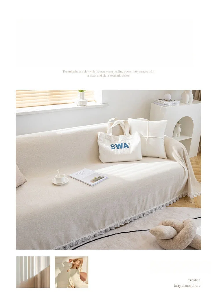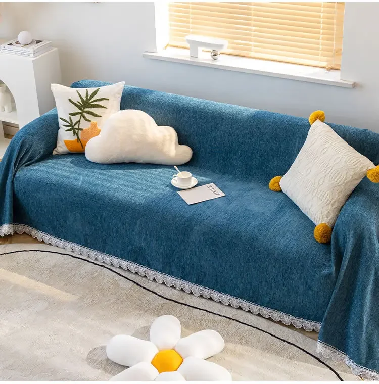 Anti-cat Stretches Sofa Towel Full Cover Chenille Lace Edge Knee Blanket Four Seasons Sofa Slipcover for Home Decor Nap Blanket