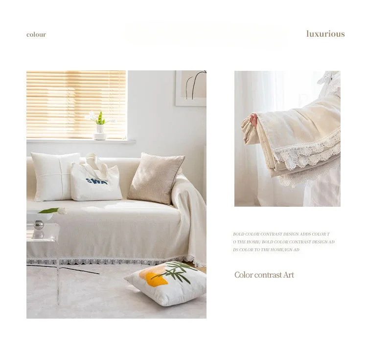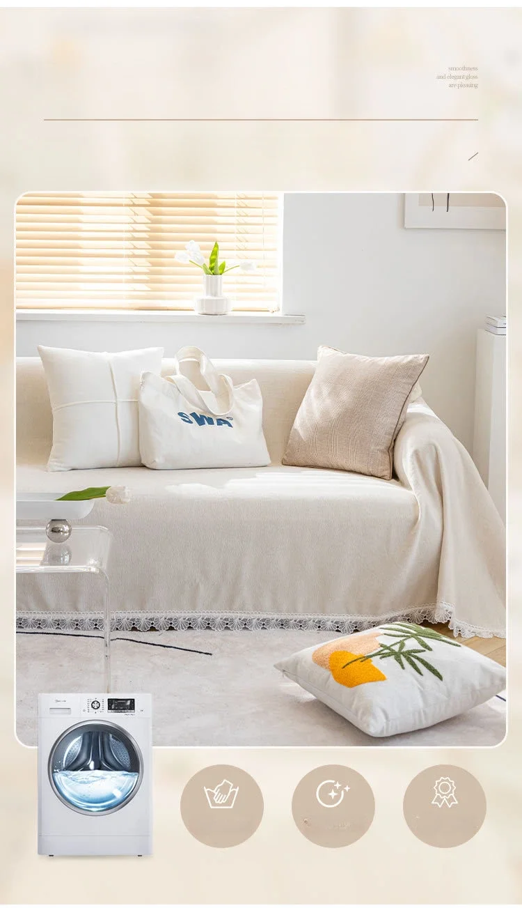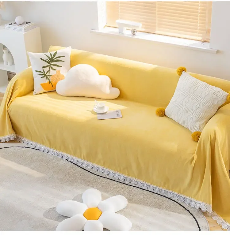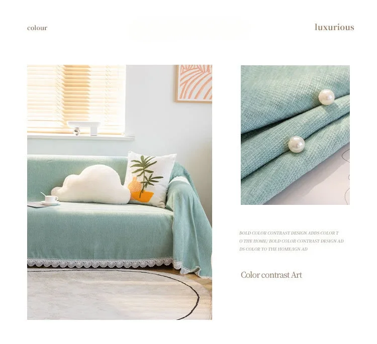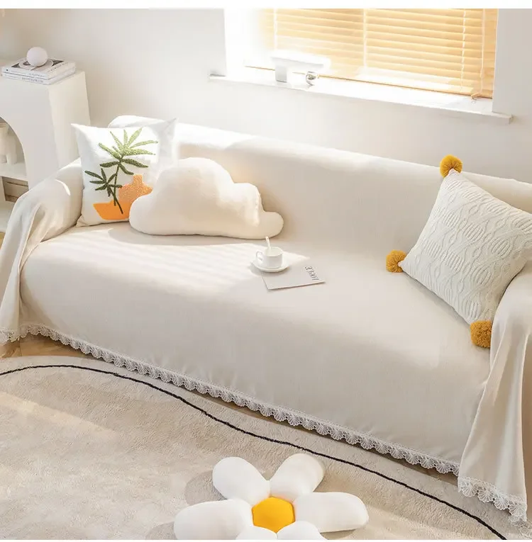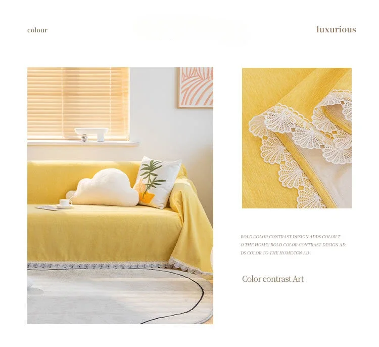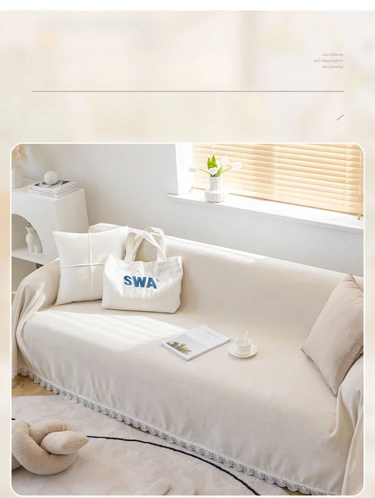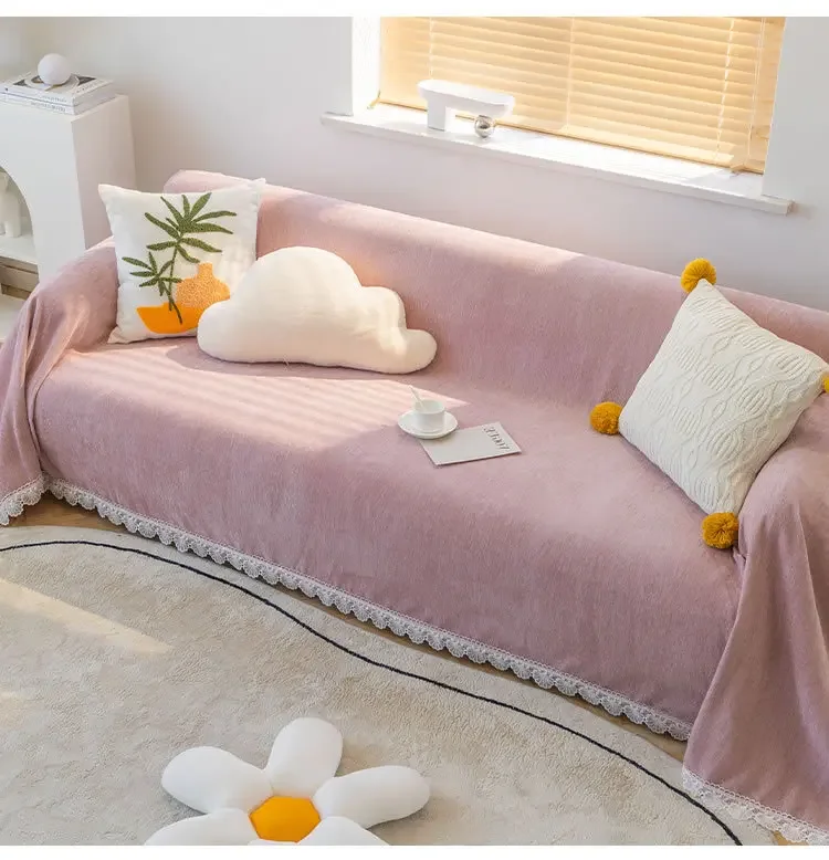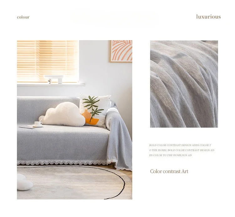 Anti-cat Stretches Sofa Towel Full Cover Chenille Lace Edge Knee Blanket Four Seasons Sofa Slipcover for Home Decor Nap Blanket