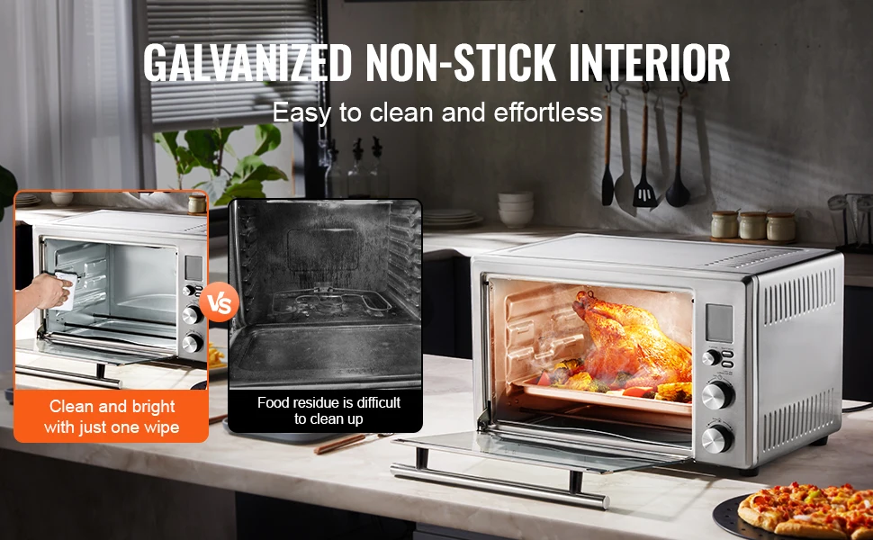 • Complete Accessories : Includes an electroplated wire rack, an aluminum baking tray, a non-stick pizza tray, a galvanized chip tray, a full set of rotisserie spit, a fry basket, a pair of gloves, and a user manual. These accessories allow you to bake various foods, and the oven mitts ensure secure handling for a perfect cooking experience!