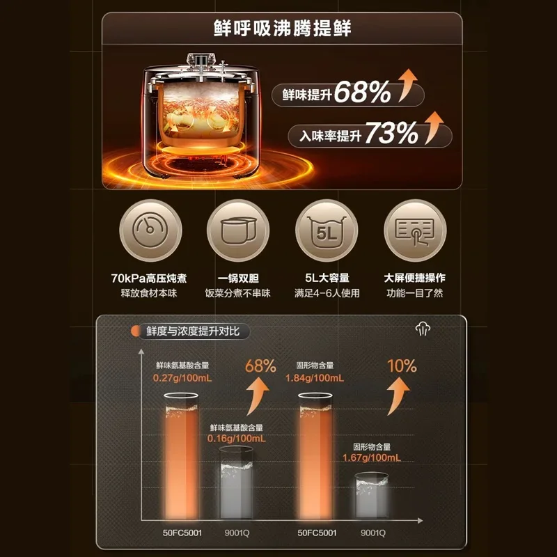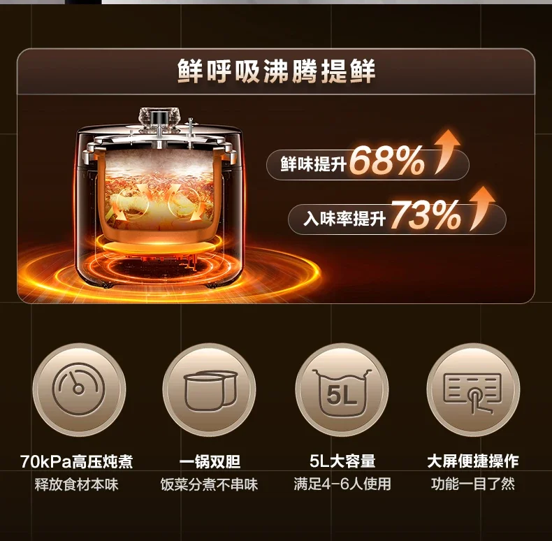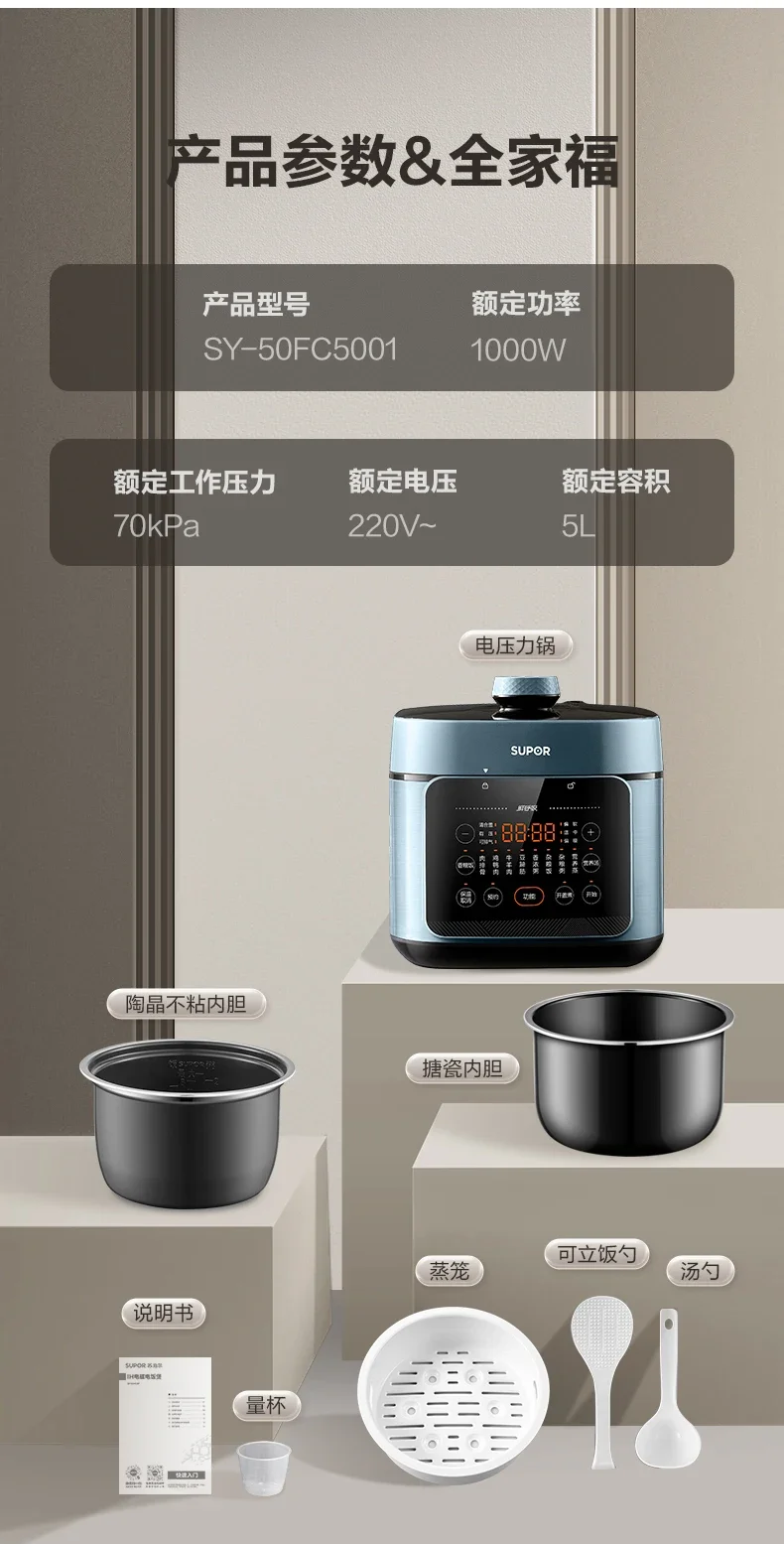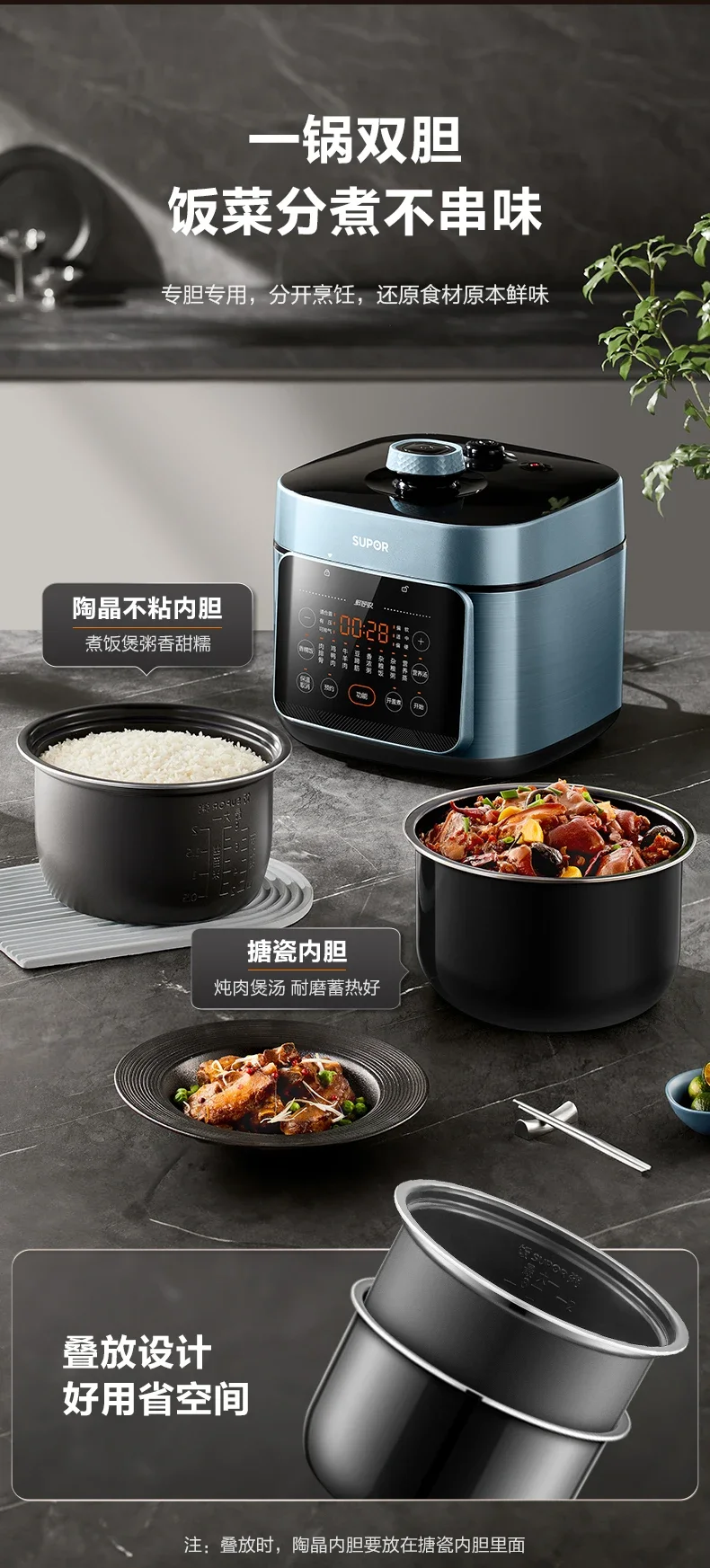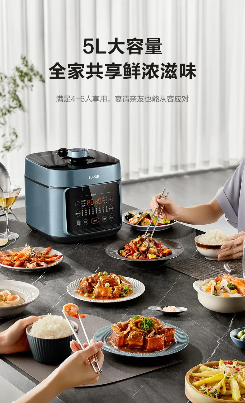 Supor Electric Pressure Cooker Household 5L Large Capacity Double Ball Pressure Cooker Multifunctional Rice Cooker Smart New