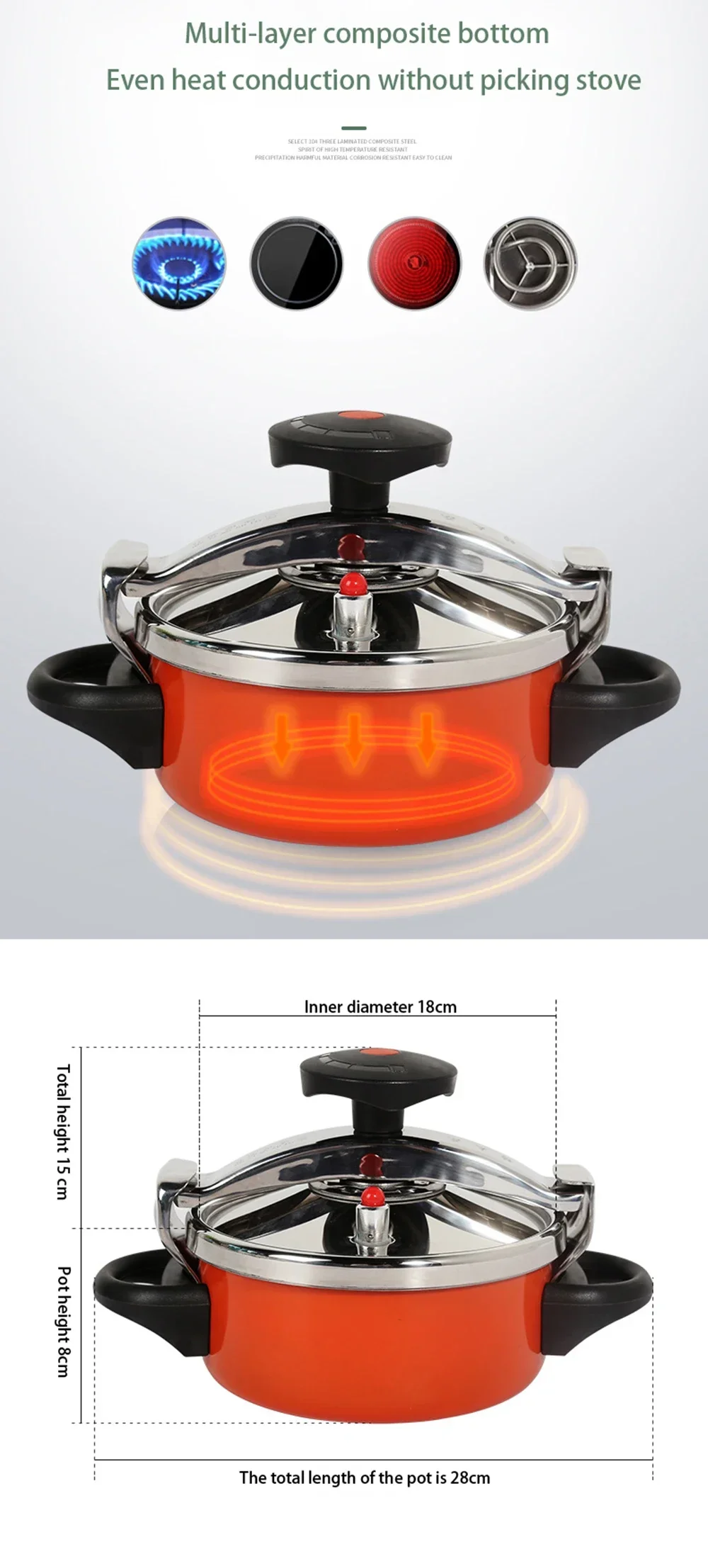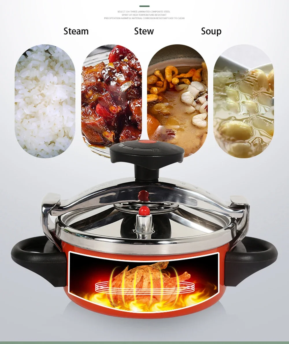 Universal Stainless Steel Pressure Cooker, Gas Induction Cooker, Safe Pot Canner, Easy to Clean